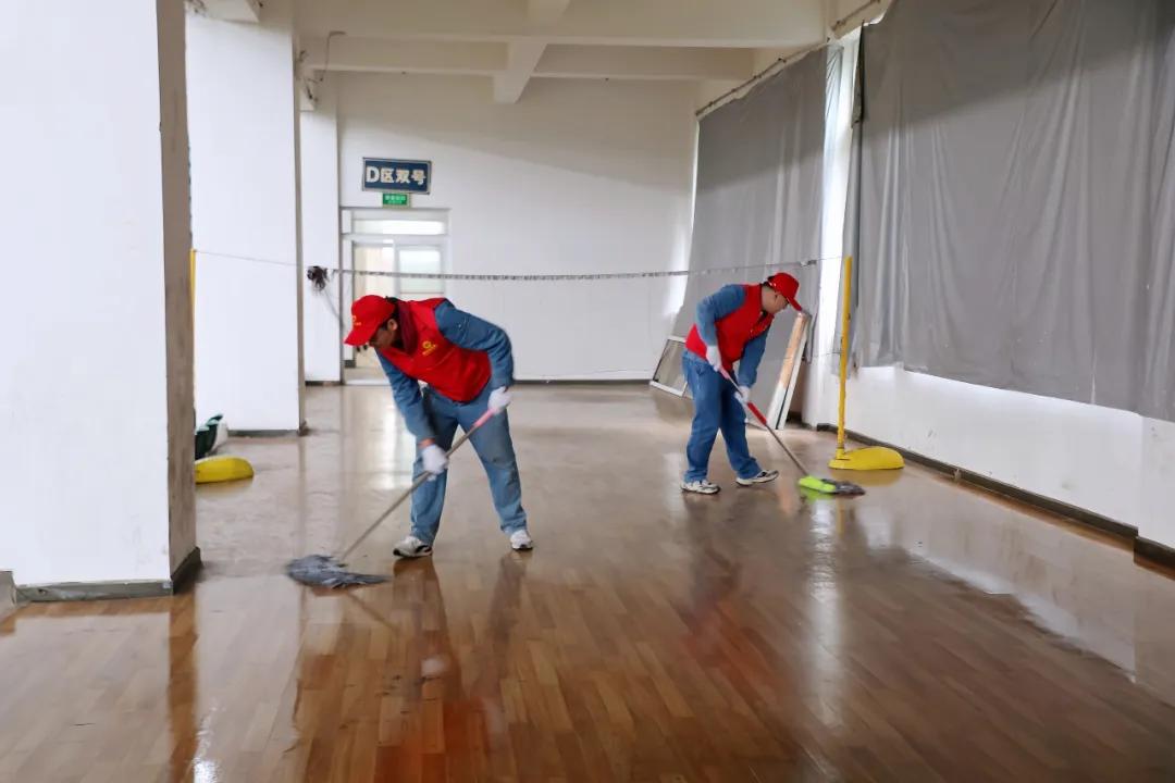 活動現場,志愿者們身著統一服裝、佩戴手套,手持清掃工具在體育館大門集合就緒,隨后分工協作、迅速行動,全力投入到體育館內部及周邊公共區域的清掃工作中。